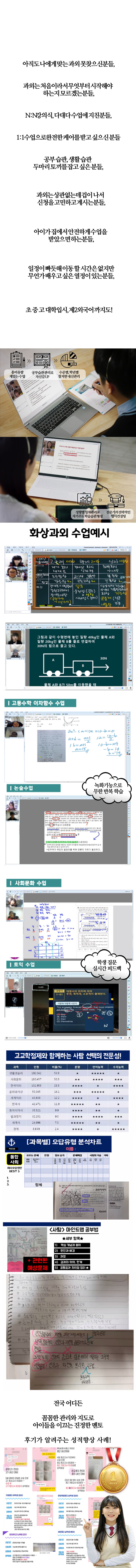 어휘, 문법, 작문, 독해 등 모든 수준의 학생들에게 맞춘 재미있는 수업 기초 개념부터 응용 문제까지 단계별 학습, 다양한 문제 유형 풀이회화, 문법, 어휘, 영작 등 실생활에서 필요한 영어 능력 향상물리, 화학, 생물, 지구과학 등 다양한 과학 분야 탐구역사, 지리, 윤리, 사회 등 사회 문제에 대한 이해 증 프랑스어, 독일어, 중국어, 일본어 등 다양한 외국어 학습